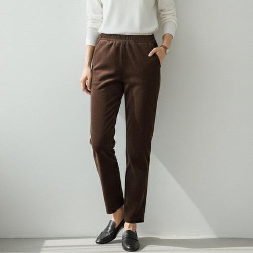 도톰 워싱면 중년여성 겨울 본딩 기모 엄마 바지 슬림 일자 밴딩 팬츠 2세트