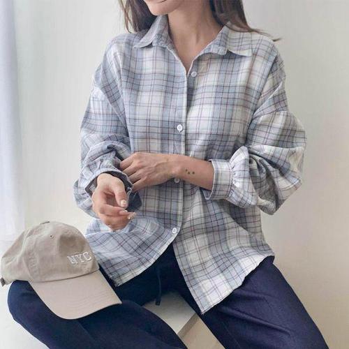[다잇템]여성 남방 격자 기모면 박시 콘트라스트 남방