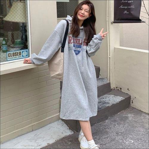 영문 여성 후드 원피스 캐주얼 여자 기모 롱 원피스