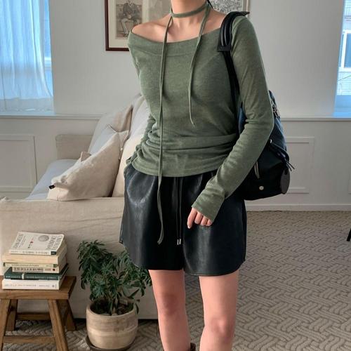 |KSTA0C4|여성 오프숄더 스트랩 롱슬리브 여리핏 기본 티셔츠