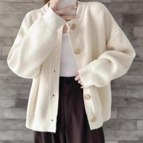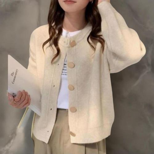 [옷자락]여성 일상 심플 기본 라운드넥 대형 단추 가디건
