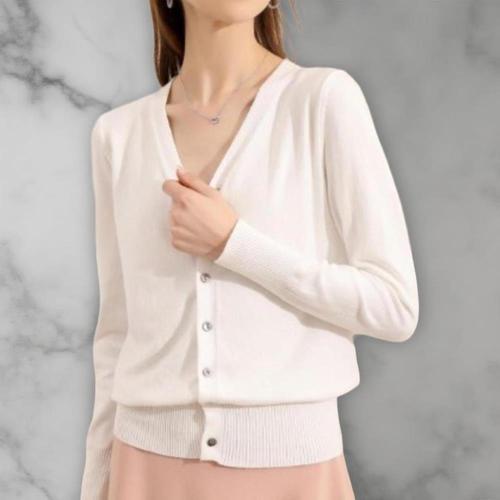 [옷자락] 여성 기본핏 브이넥 비스코스 롱슬리브 가디건