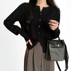 [옷자락] 여성 일상 심플 기본 라운드넥 대형 단추 가디건