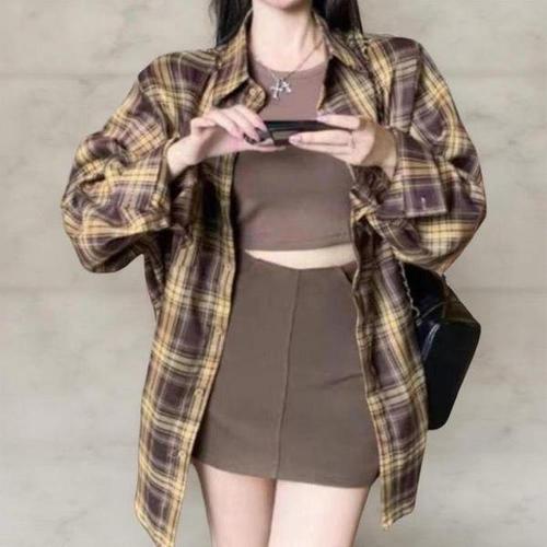 [옷자락]여성 루즈핏 가을 체크 셔츠 데일리 기본 남방