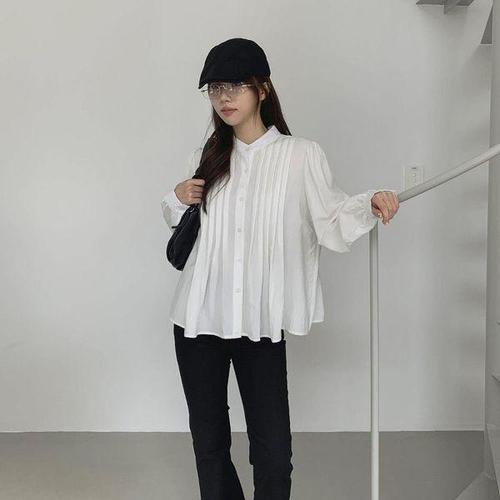 [신상오픈런]여성 기본 색상 핀턱 헨리넥 셔츠