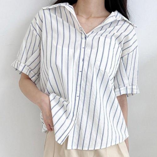 [오너클랜]인기상품 여성용 노카라 셔츠 봄여름 얇은 데일리 기본 블라우스 [WFLKZVS_260304]