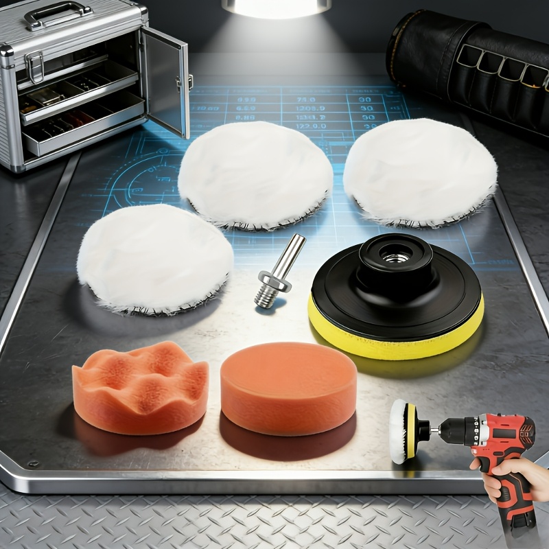 TEMU 7개입 전문가용 차량 광택 부속품 (광택 패드 6개 + 커넥터 1개 포함) | 스펀지 고무 광택 패드 및 드릴 커넥터로 페인트 관리 및 광택 강화, 왁싱 및 광택용으로 설계됨