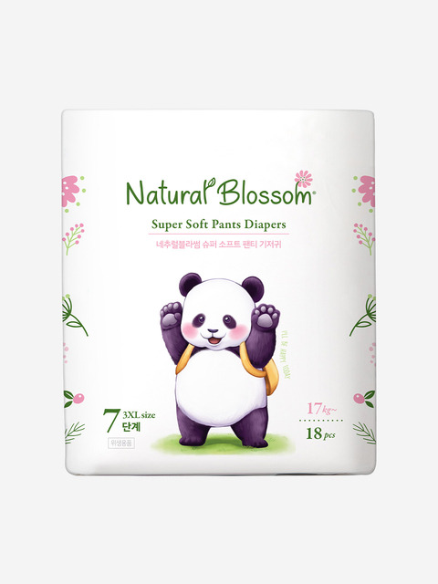 [네추럴블라썸][1팩체험팩] 비건기저귀 팬티형 7단계(3XL) 18매x1팩 / 슈퍼소프트 낮밤기저귀 겸용