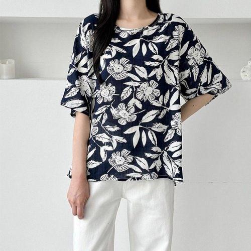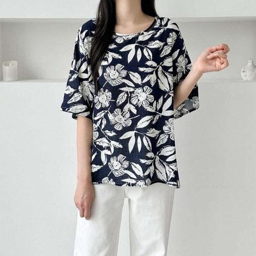 [오너클랜]인기상품 여성용 여름 인견 플라워 반팔 티셔츠 쾌적한 컬러풀 상의 [WFLKZPE_260304]