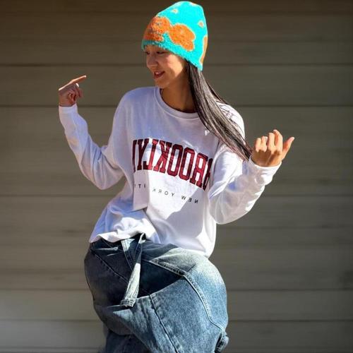 [미라클세븐]여성 겨울 기모 긴팔 라운드넥 티셔츠 레터링 이너웨어
