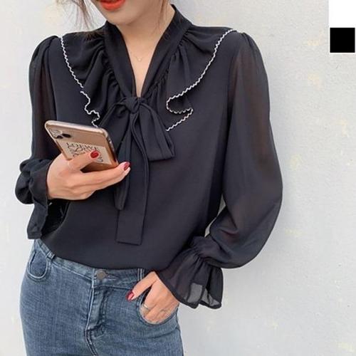 [엄지척]여성 리본 프릴 트렌드 쉬폰 긴팔 데일리 1P 하객 데_19652073_667501