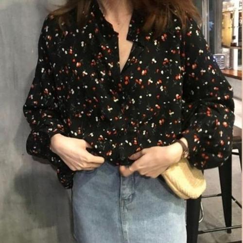 [엄지척]쉬폰 꽃무늬 퍼프 긴팔 데이트룩 블라우스 간절기 화_19650859_667501