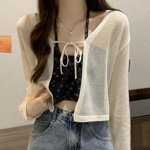 [셀럽하우스]얇은 ECKS6040 망사 숏끈 가디건 데일리 여성가디건
