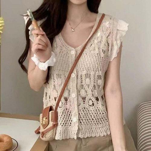 [오너클랜]인기상품 여름 여성 니트 망사 조끼 크로셰 베이지 가디건 [WFLINUT_260301]