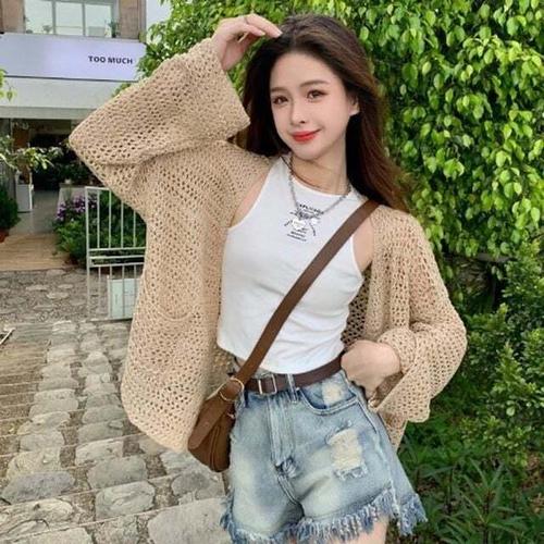 [셀럽하우스]여름 YMEQ4155 해변 볼레로 가디건 망사 니트 휴양지 패션