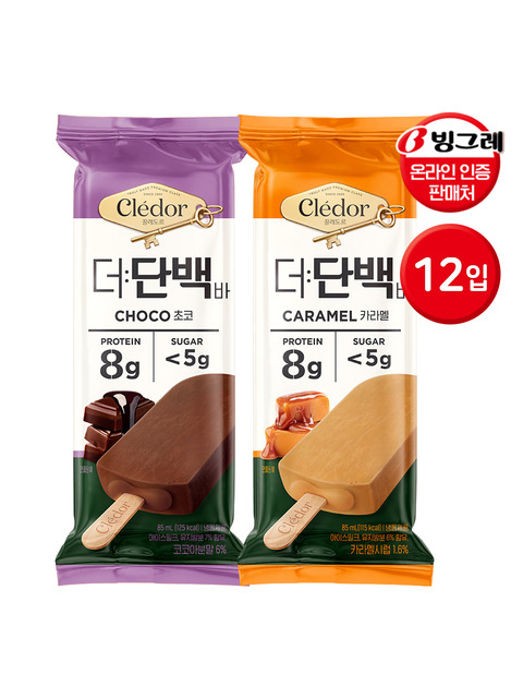 끌레도르 더단백 바 단백질 아이스크림 12개 (초코/카라멜)