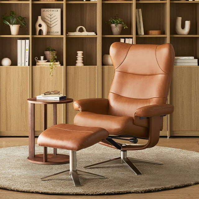 HEMUS 정품 편한 1인용 리클라이너 쇼파 1인 회전 안락 휴식 의자 거실 침실 쿠션 독서, HM브라운가죽 + 아이보리소파