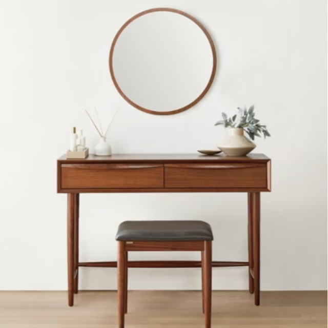Montheria 화장대 원목 화장대의자 거울과 의자 포함 A598-110