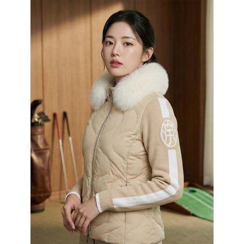 자연 여우털 칼라 루즈핏 오리털 숏 코트 및 재킷 여성용, 화이트, 겨울