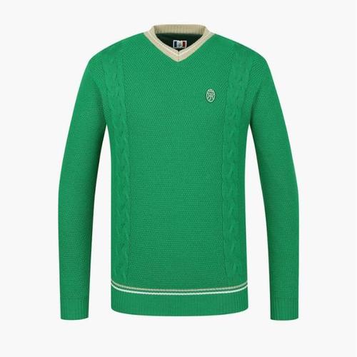 [까스텔바작]겨울 남성골프웨어 컬러 배색 니트 브이넥 방풍 바람막이 골프 캐주얼 데일리 남자 니트_CA