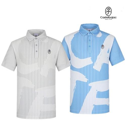 까스텔바작 골프 남성 여름 냉감 스트라이프 패턴 믹스 카라 반팔 티셔츠 BG-EMTS212