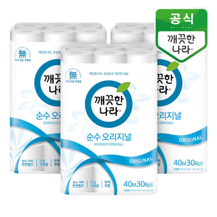 깨끗한나라 주식회사 깨끗한나라 순수 오리지널 40m 30롤x3팩