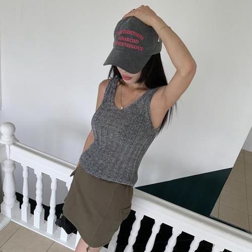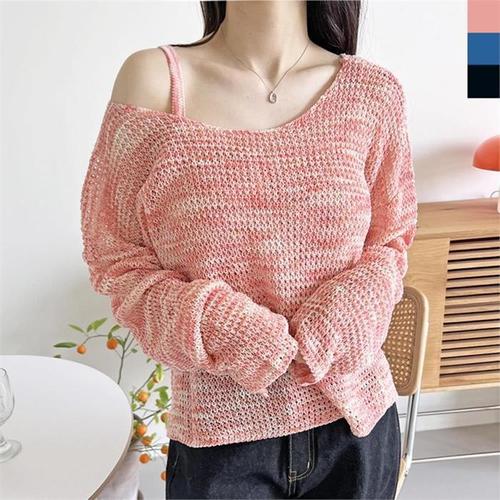 그물 레이어드 나시 민소매 망사 니트 여성 여름 나시티 OFS-KNV9