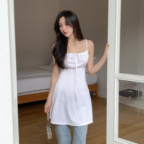 [옷자락] 여자 리본 여리핏 바캉스 끈나시 원피스