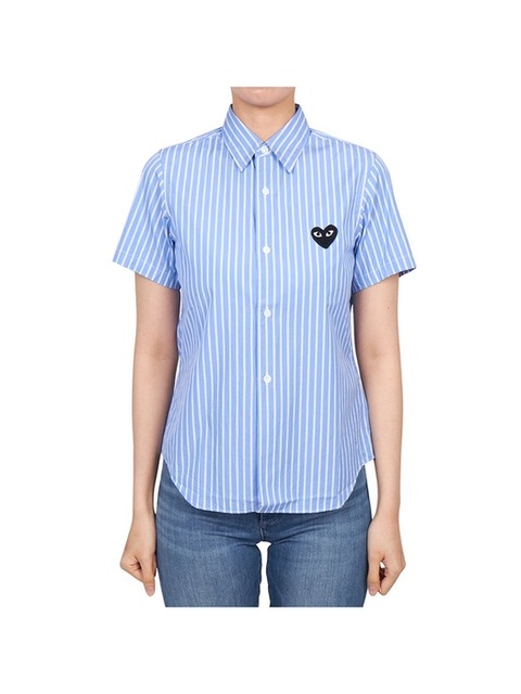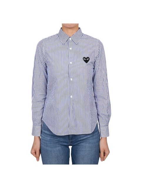 꼼데가르송 플레이 스트라이프 블랙 하트 셔츠 블라우스 상의 블루 AX B018 051 AZ 4640505