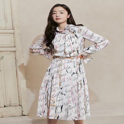 [꼼빠니아]꼼빠니아]트위드 주름 치마 벨티드 원피스 CAFW9-WOP500 KG