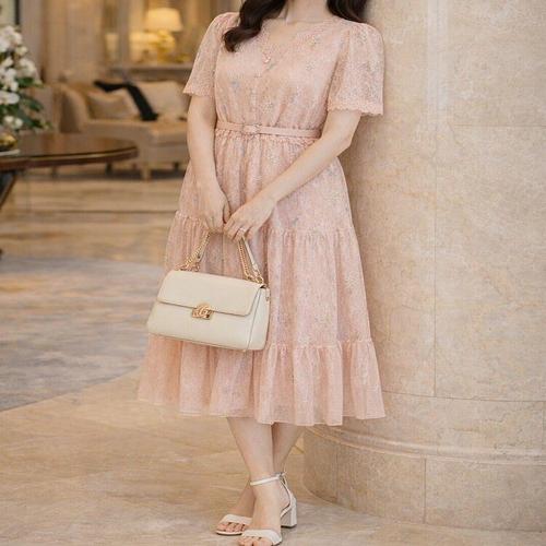 [꼼빠니아]여성 노카라 레이스 핑크 벨티드 원피스 CAEU4-WOP500