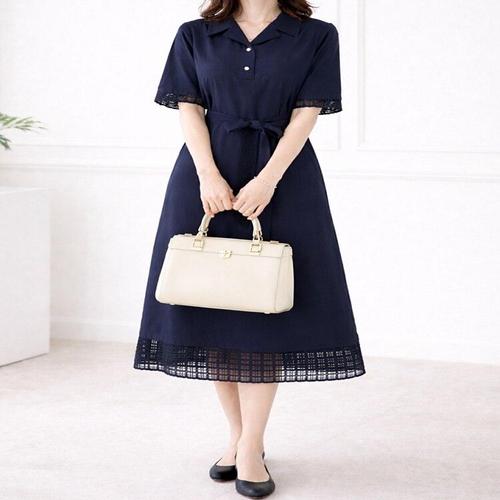 [꼼빠니아]여성 펀칭 자수 린넨 혼방 반팔 원피스 CAEU4-WOP120
