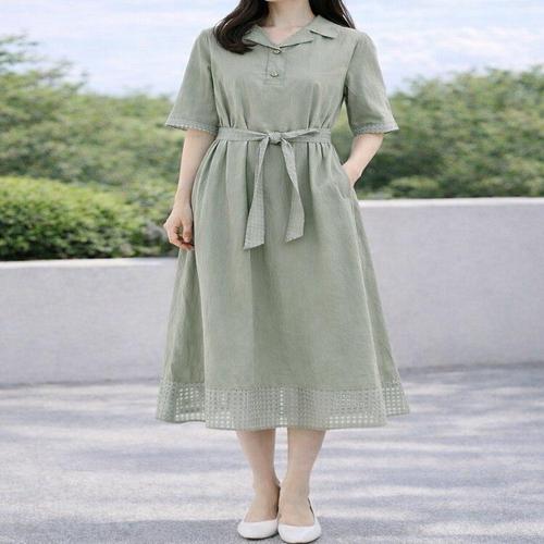 [꼼빠니아]여성 자수펀칭 린넨 벨티드 원피스 CAEU4-WOP120-660