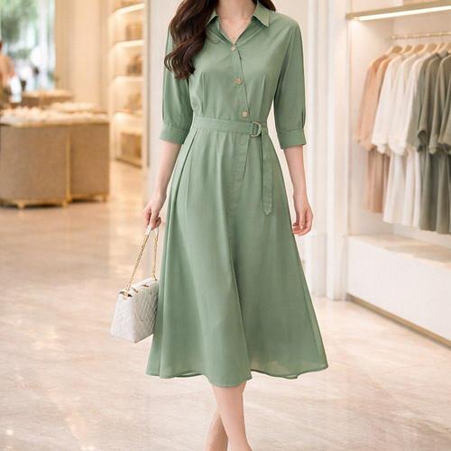 [꼼빠니아]카라 버튼 투피스형 원피스-CW24OP0501548A