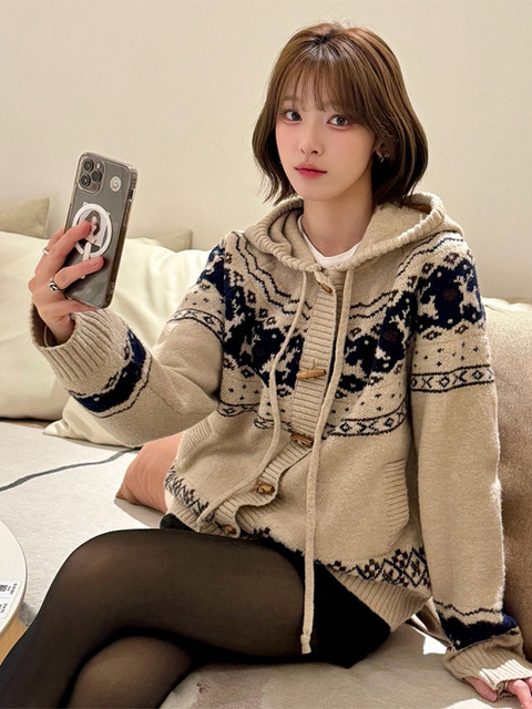 [꼼파뇨] [2-WAY] 노르딕디어 토글 후드 니트 크림