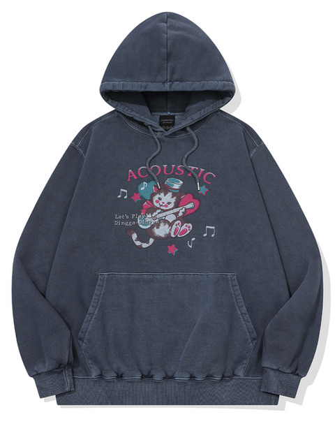 [꼼파뇨] 어쿠스틱캣 피그먼트 후드티 다크블루