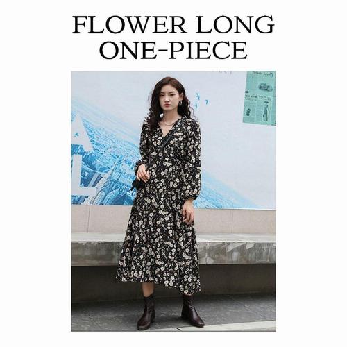 [오너클랜]인기상품 플라워 허리끈 꽃무늬원피스 브이넥 롱원피스 여자 [WFLNM78_260205]