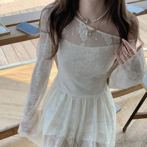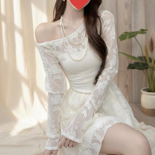 [다잇템]여성 비침 크로쉐 볼드숄더 꽃무늬 원피스 (46118752)