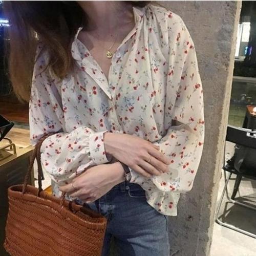 [엄지척]여성 꽃무늬 쉬폰 블라우스 루즈핏 셔츠 봄블라우스_19645164_667501