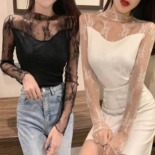 [엄지척]여성 꽃무늬 플라워 패턴 반목 시스루 블라우스_19651428_667501