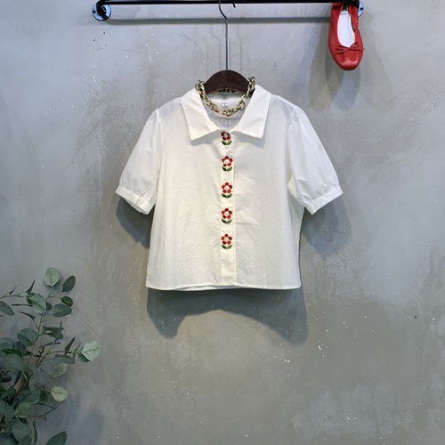씨샵인더룸 / 링코 꽃자수 단추 반팔 카라 셔츠 2color