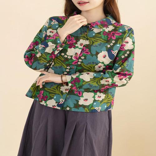 린넨 오버핏 여성 7부 셔츠 예쁜 꽃무늬 블라우스