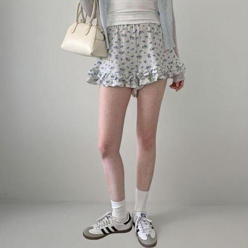 [신상오픈런]여성용 프릴 꽃무늬 밴딩 숏 팬츠 러블리 캉캉 스타일