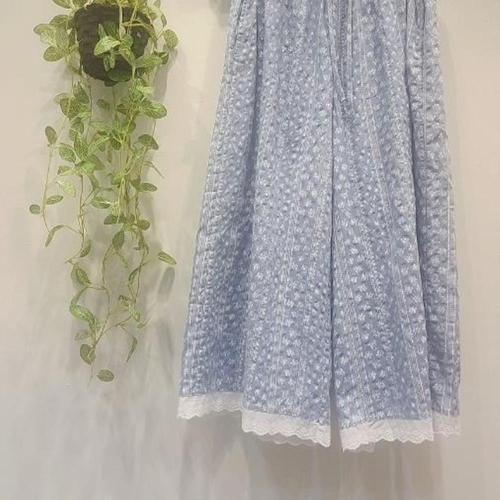 [다잇템]여자 엠보 넓은 패턴 꽃무늬 고무줄 롱 팬츠 (10450200A)