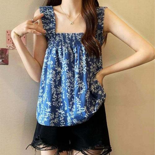 [셀럽하우스]여성 VGBU8844 꽃무늬 가슴 스모크 밴딩 나시