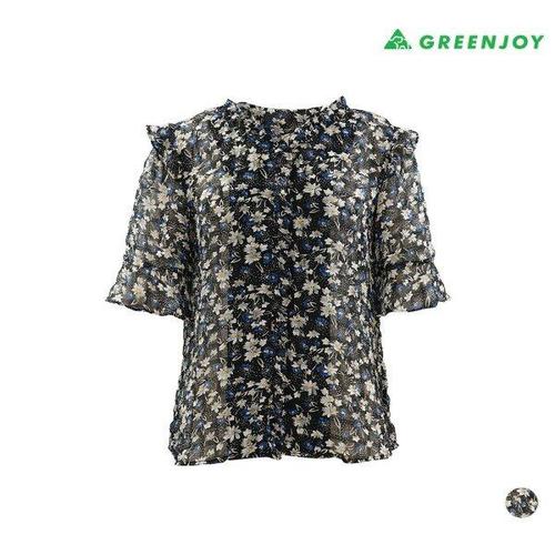 [그린조이]여성 여성 셔링 꽃 프린트 블라우스