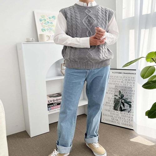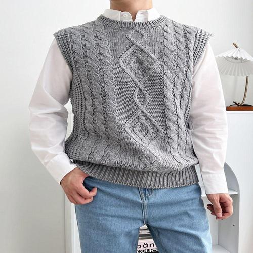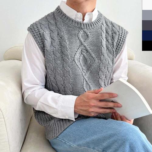 [셀럽하우스]남성 WNLL5462 베스트 심플한 남자 꽈배기 니트조끼 캐쥬얼코디