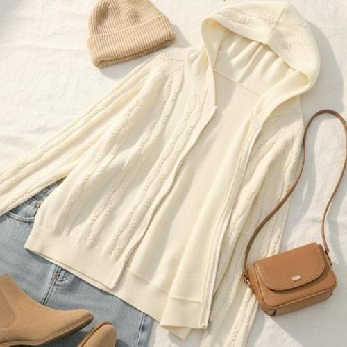 Latium HC06 짧은 뜨개느낌 두줄꽈배기 깔끔한 집업 후드 니트가디건 T2543cd06I