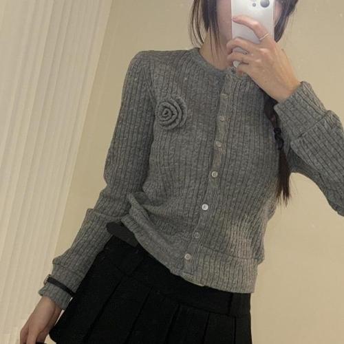 [다잇템][다잇템] 여자 꽃무늬 꽈배기 라운드 긴팔니트 브로치 가디건_24340902_588872