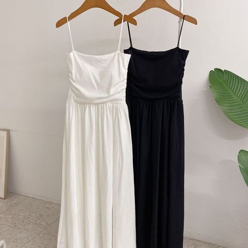 비븐 캡내장 골지 셔링 끈나시 롱 원피스(2color)
